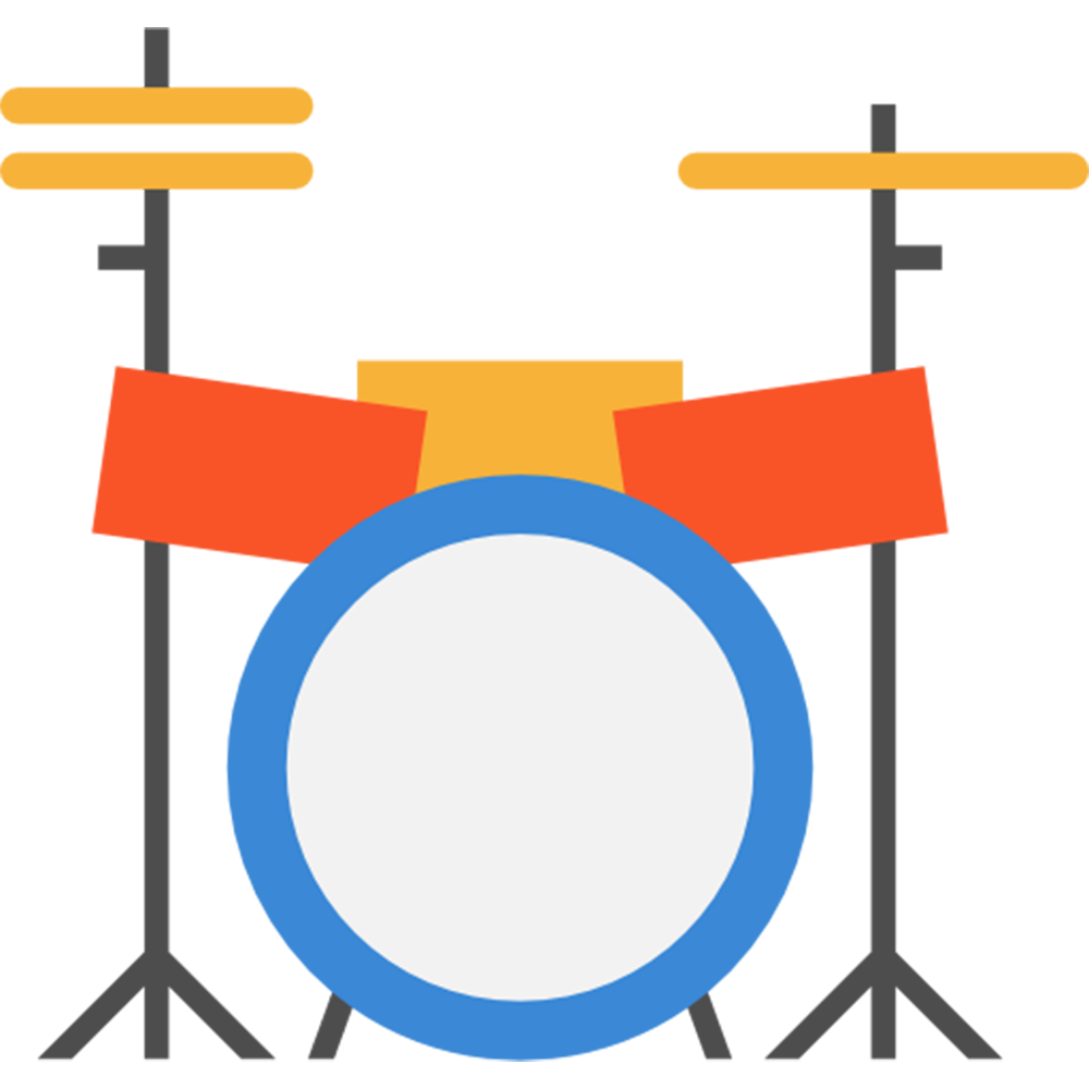 Mempelajari teknik bermain drum seperti sticking, pattern berbagai genre music serta pengimplementasiannya pada lagu.